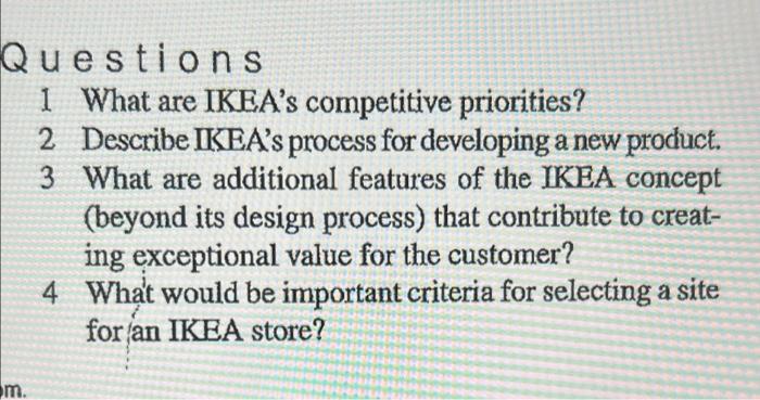 Solved Questions 1 What Are Ikea S Competitive Priorities 2 Chegg Com